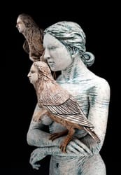 This connection to myth and women's experience, especially as linked to personal narrative, also exists in the work of artist Adrian Arleo. In her piece Sires of Rutino, she draws a connection to the myth of the Odyssey by referencing the sirens, magic women who cast spells on men so that they might wreck their ships on the rocky coast. In Sirens of Rutino, however, the Sirens sit on the arms of the human figure and represent Arleo's own daughters. (http://citeseerx.ist.psu.edu/viewdoc/download?doi=10.1.1.1025.3716&rep=rep1&type=pdf)