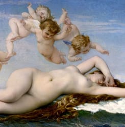 The same year, 1863, is also the date of the only one of Cabanel's paintings that is still well known. His almost ridiculously erotic La Naissance de Vénus - the birth of Venus - was a great success at the Salon that year and was immediately snapped up by the Emperor for his private collection.