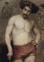 Her most well-known paintings, such as Lady with Binoculars or Portrait of a Young Woman with a Rose - Portrait of Mlle R., are marked by an exquisite elegance, an unpretentious womanly charm and a discrete restraint in the psychological characterizations. Both display a fine precision of drawing, a clear definition of form, a sophistication of the color scheme, employing subtly differentiated tones and varied value intensities. The two paintings present a clear mastery of depicting the textures of fabrics and a perfection of the painting. They also fall within the realist style thanks to the natural ease of composition and above all the artist’s ability to grasp the specific state of mind and the psychological mood of the models, who are portrayed simply, without any idealization. Her male nudes and partial nudes of that same period were also very well received, characterized by a similar sensibility for texture, color and form.