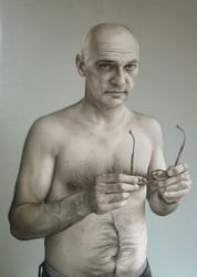 The art of portraiture has a well-known commission culture, where status, embellishment – and thus avoiding imperfections and emotions – are common. Busschers has chosen a different approach in her portraits, by focusing on the personal and characteristic elements of the person portrayed. The person’s uniqueness and individuality play a positive and determining role. She researches the defining events in the life of the person. People initially judge each other by their skin, and therefore Busschers focuses mainly on that skin. Due to the size of her portraits, a confrontation between the artwork and the viewer is inevitable – the portrait demands one’s attention and captures it. The viewer can’t walk away! Yet her work lacks the acute sharpness of the hyper-realistic portraits. Busschers concentrates on the characteristics that make a person unique. Therefore, she sometimes uses abstractions, or chooses not to include details on parts of her work at all. To enhance the expressiveness and importance of the skin of the person portrayed, Busschers uses a variety of techniques and carefully selected colours, and she works in multiple layers, consisting of different materials. She is constantly looking for change. As a result, the viewer’s natural distance to the portrait is reduced to a minimum, an intimacy normally only reserved for lovers. (https://markpeetvisser.com/artists/annemarie-busschers)