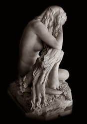 Eve is saddened for having lost Paradise, with the infinite happiness and beauty that God had prepared for her and all her descendants....The woman’s posture reminds us of a funerary monument created in 1875 by Allegretti’s teacher, Santo Varni. http://www.italianways.com/antonio-allegretti-eve-after-the-sin-with-a-surprising-finale/
