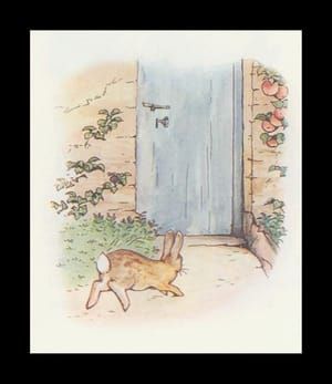 The illustrations for The Tailor of Gloucester, her second and favorite book, were drawn in Gloucester and the country round about, the story being based on an actual Gloucestershire story that she heard while staying with a cousin near Stroud. The fabrics in the watercolors are said to have been taken from fabrics in the V & A.