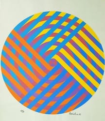 "During the 1960s Brian Rice produced luminous, hard edged abstract paintings and prints, which .... quickly found their way into international collections. The roots of inspriration lay not in the 50s and 60s icons of the 'Pop' era but rather more in the De Stijl and European Constructivists of the 20s and 30s. However by the mid 1970s disillusioned by both his output and the general art..." http://www.brightcolors.com/product/brian-rice-tangents-1967-original-art-print-signed-silkscreen-2