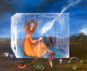 Bridget Tichenor painted two paintings of actress Maria Felix; she concentrated on painting the context of the painting, and requested Antoine Tzapoff to paint the face of Mdme. Felix in each painting. (http://chisholmgallery.com/wpg2-2-2?g2_itemId=25260)