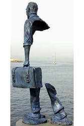 One of a series of 10 bronze sculptures called “Les Voyageurs (The Voyagers”) put on display in Marseilles, France in 2013. This one is called “Le Grand Van Gogh”. Through the missing parts of the man we see the sea. What is it that he’s missing? Is he leaving something behind or is he going toward something? Does it symbolize the emptiness people feel when they have to leave their homes, fleeing war and misery?