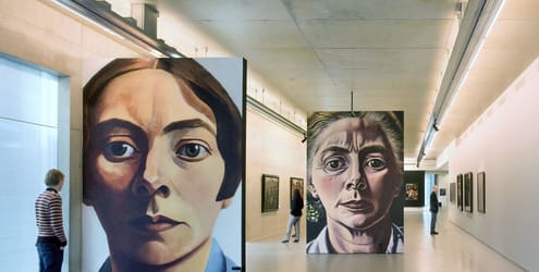 Toorop portrayed herself in all phases of her working life. Her self portraits are among her most fascinating works, because she portrayed herself very directly and sincerely - that is, unflattering - in this. This self portrait painted in clear areas is the smallest in terms of dimensions, but no less impressive. It is a both intimate and confrontational portrait: Toorop placed her face full-length and frontal in the plane, against a light background. She painted this portrait in 1928 for her former lover, the anarchist and social historian Arthur Lehning. Although their relationship ended not long after this portrait, Lehning kept the painting in his possession until his death. [Google translation of text at http://collectie.boijmans.nl/nl/object/132828/Zelfportret/Charley-Toorop] Toorop is regarded as the most prominent female Dutch artist of the 20th century. She created an oeuvre that is strong-willed, self-aware and socially committed. [https://www.boijmans.nl/en/exhibitions/