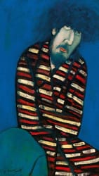 Chiu Ya-Tsai was a Taiwanese contemporary artist known for painting portraits, where he’s not so much concerned with the facial expressions of his models, but rather with their minds. (http://www.widewalls.ch/artist/chiu-ya-tsai/) Chiu's portraits of Taiwan's modern-day literati are greatly influenced by the figure painting of the Tang dynasty (618-906 AD) seen in the hooked noses and almond-shaped eyes. Elegant androgynous-looking men and women with elongated, oval faces are shown seated or standing in partial profile. The subjects appear to be lonely, even melancholic, but controlled and self-possessed. (http://www.ravenelart.com/artist.php?id=11&lan=en)