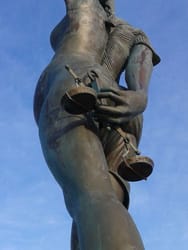 A 66 foot bronze-clad sculpture, meant to be a modern allegory of truth and justice. The figure's stance is taken from Degas' late 19th Century Little Dancer of 14 Years and is referenced by Damien Hirst in his earlier bronze Virgin Mother from 2005. 'Verity' is from the Italian word of Truth, while she holds the traditional symbols denoting justice – a sword and scales. See more at http://designdaily1.rssing.com/chan-5510314/all_p3.html .
