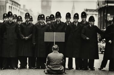 A lone protestor on Whitehall during the Cuban Missile Crisis, London