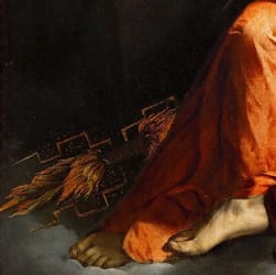 "I'd never seen this painting before, and I think it's rather wonderful. An unusual, complex, but perfectly balanced composition. Lighting that is forceful but also nuanced. And, most of all, I find the color harmonies extremely beautiful. There are lovely details - the feathery trees, Mercury's feathered sandals/feet, Jupiter's lightning bolts, tossed at his feet - and many of the highlights look to be picked out in gold leaf. It also has that something extra I'm always thrilled to find in an otherwise merely beautiful painting: it's pretty damn nutty. I'm sure there are art historians, experts on Renaissance iconography and/or classical mythology who could explain the thing to us; there are probably innumerable scholarly treatises on just this single painting. I suppose it's some kind of allegory of painting. And from what I understand, the story goes that Virtue and Fortune were having a row and Virtue trotted off to Jupiter to get him to intervene. But Mercury told her to hold on, saying that the gods were busy "making cucumbers blossom and painting the wings on butterflies". Alright, fair enough. That still doesn't explain one very particular detail, one rather perverse artistic choice: having left off his typical macho styling and godly bravado, why is Jupiter - so languid his posture, head tilted back, legs coyly crossed - sitting there in that terribly fetching nightgown?"