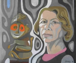 Self Portrait with Wooden African Figure