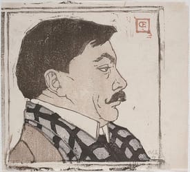 Some sites attribute this to Koloman Moser, calling it a self portrait. This appears to be incorrect as there seems to be the signature of Orlik in the upper right hand corner.