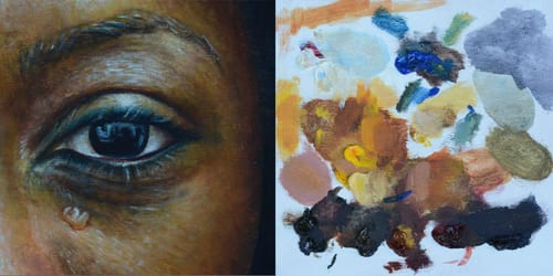 From the Solo Exhibition "Sitting With" at Treason Gallery in Seattle, WA in September of 2016. “Sitting With” pulls together a group of women whose individual visual presence is one of being powerfully alone. The symmetry of the space leads one to find themselves in both the intimacy of the portraits, and the vastness of a communal landscape. In a society that garners power through dehumanization, engaging images of people are often denied a pure encounter. We all see through lenses that are skewed in some way. In the words of author Annie Dillard “...I see only tatters of clearness through a pervading obscurity.” Our visual and relational spheres exist within structures of obscuring others. This process of seeing both in the creation of the pieces, as well as observing the outcome, is done in hopeful, clumsy defiance of a culture of rampant dehumanization. For more information visit: www.treasongallery.com