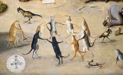 ...a 16th century oil on panel painting depicting a Boschian vision of a witches celebration, complete with unspeakable acts galore and cats dancing in a ring. We know precious little about the painting, which is the work of a follower of Jan Mandijn and resides in the collection of Morbid Anatomy Museum board member Jennifer Butkevich.