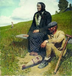 "Clouds of 1945" (1980-1985, Tretyakov Gallery) is one such philosophical painting. It shows a man who has lost a leg in the war, with an elderly woman dressed in dark mourning clothes. Both are pensive, caught up in memories from the past. Behind the figures lies a panoramic landscape - a large meadow beneath a vast, tranquil sky. This backdrop brings the narrative back to the present day. "The war is over, he is missing a leg but he is still happy. He looks at the clouds, smells the grass: life has won," Korzhev explained. Time, in this painting, is historically specific: inevitably, it flows onwards. Yet the past rises up again, in the memory of future generations. The artistic metaphor for time that Korzhev creates in this work, allowing past, present and future to intermingle in their complex ways, shows just how deeply the artist felt the very spirit of history.