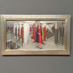 Using the Renaissance technique of painting with egg tempera, George Tooker constructed meticulously wrought figurative scenes filled with mysterious imagery. The Subway depicts the anxiety and alienation typically associated with the pressures of modern urban life. The low ceilings and unsettling triple perspective invoke the claustrophobia of the city’s maze-like underbelly. This psychological portrait of public life illustrates Tooker’s oblique engagement with Surrealism: “I am after painting reality impressed on the mind so hard that it returns as a dream,” he remarked, “but I am not after painting dreams as such, or fantasy.” (http://arteverywhereus.org/Art-Gallery/id/127)