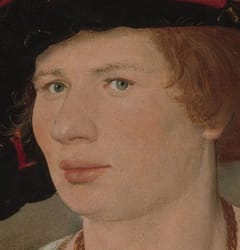 In 1517 Holbein decorated the house of the Lucerne magistrate Jacob von Hertenstein. Concurrently, he made this portrait of the magistrate's eldest son, Benedikt, who engages the viewer both with his direct glance and the inscription, which reads as if he is speaking: "When I looked like this I was twenty-two years old." Directly following these words is the declaration, that "H.H." painted the work. The artist’s use of paper mounted on wood is unusual but not unique. He initiated the portrait as a drawing on paper and then continued working up in oil colors to its completion.