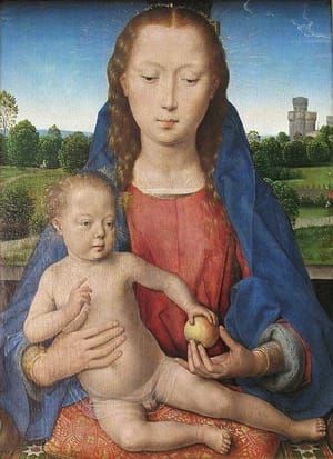 Triptych of Earthly Vanity and Divine Salvation (c.1485) is a polyptych by Hans Memling. It consists of six oil on oak panels [3 wings painted front and back], 20 x 13 cm (each wing) and is currently housed at the Musée des Beaux-Arts de Strasbourg. It was executed for the Loiani family of Bologna (as the coat of arms attests). [For further description of each panel see http://www.artandpopularculture.com/Triptych_of_Earthly_Vanity_and_Divine_Salvation] The Strasbourg museum has six small panels of the same size (20 cm x 13 cm), whose original frame has been lost. In the absence of a completely convincing reconstruction, it is cautiously called "polyptych". But it is very likely that it was a portable triptych like that of Benedetto. With the particularity of being painted entirely on both sides and visible on both sides: the only double portable triptych of western painting. [Google translation of text at https://artifexinopere.com/?p=2354] ...this triptych focuses on the idea of “Memento mori,” a Latin phrase that translates to “Remember your mortality.” Memling’s triptych shockingly contrasts the beauty, luxury and vanity of the mortal earth with images of death and hell. The three panels on the front of this triptych show a beautiful nude looking in a mirror, flanked on either side by images of death and the devil. Her nakedness is meant to be erotic, which is “indeed exceptional for its time.” The symbolism is heightened with the addition of lusty greyhounds along with a little terrier dog, which we have also seen in Jan van Eyck’s Arnolfini Portrait, meant to represent either marriage or, more likely in this case, physical love. [http://cargocollective.com/northernren/Memling-Triptych-of-Earthy-Vanity-and-Divine-Salvation-front] Not only is this work unique in Memling's oeuvre, its theme and form also make it extremely unusual for the art of its era. Physical examination shows that we are dealing with three small panels, which were painted on both sides but subsequently separated. The little triptych is not, however, Memling's first painting on an allegorical and moralizing theme, and belongs to the series that also includes the Allegory of True Love and the Allegory with a virgin. It must have been a folding meditative painting, which could be stood on a cabinet with its wings slightly open. The front of the triptych featured the naked woman in the middle flanked by Death and the Devil, each with an admonitory banderole. The only actual scene on the rear is that of heaven, which appears between emblematic subjects - the coat-of-arms and the skull - in the wings. The texts refer to the end of mankind and the way to its salvation. By making the naked woman looking in a mirror the principal scene, the work becomes an erotic Vanitas allegory, a motif that was not destined to become popular until the 16th century. The purely erotic character of the nude is indeed exceptional for its time. This is the only example in which the female genitals are shown uncovered. This woman, with a diadem in her long hair, who looks in the mirror and unashamedly shows off her nakedness but for the sandals on her feet, simultaneously represents Vanity and Lust. She is the antithesis of the virgin in the little painting in the Musée Jacquemart-André. To her left there is a griffon, a breed of dog that is customarily included in paintings whose subject is marriage or physical love. The significance of the amorous greyhounds on the right is also clear. The watermill, which constantly alludes in Memling to the Incarnation and which is once again placed prominently in the landscape, might be intended here as a contrast with the sinful ways of the flesh portrayed in the foreground. The woman's genitals in the Vanity scene correspond with the toad - the demonic creature to be seen over the genitals of Death. It is not possible to determine from any physical clues whether this panel was originally located to the left or right of the central panel. In terms of composition (poses and the positioning of the banderoles) the layout presented here - with Death and Hell to the left and right respectively - would appear most satisfactory. The glowing reflection of the flames on the bodies in the jaws of hell recalls the Gdansk Last Judgment. [https://www.wga.hu/html_m/m/memling/3mature4/26vani1.html] The central panel from the Triptych of Earthly Vanity and Divine Salvation is called Vanity. [http://kundst.tumblr.com/post/164702063294/hans-memling-ger-1433-1494-vanity-c]