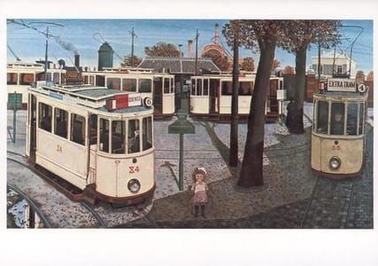 In an interview the painter says: "Here is my wife as a child. She once told me that as a child she dreamed that she was put on the tram by her nanny. The nanny then jumped from the tram, which drove away, with the little girl in a complete panic. I painted her as a ghost. " Viva nr. 48 van 28 november 1980. (http://www.nicospilt.com/index_kunst.htm)