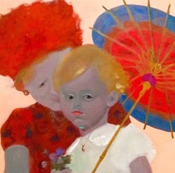 The indifference of the characters in this painting on a day commemorating the crucifixion of Jesus is thought to indicate American indifference to the suffering of the Vietnam war. Collection of Burch and Louise Craig [https://vindevie.me/2017/08/29/honore-sharrer/] After Reception, Sharrer’s work changes yet again. Brigham says, “From there, the work becomes increasingly more surreal and almost Mannerist. She’s using exaggeration and odd juxtapositions, shifts of scale, and everything is presented in a sort of abstract way.” Brigham cites Good Friday (1970–75), in which a family in their Sunday best walks past the feet of a crucifix. “Over to the right hand side are two dogs mating,” says Brigham. “It’s showing the holiest of holy days and the most normal act of procreation.” [http://www.artandantiquesmag.com/2017/05/honore-sharrer/] Honoré Sharrer is a figure of contradictions. As a teenager she was the May Queen of her private high school in San Diego. A few years later, during World War II, she was an original Rosie The Riveter, working as a steel plate welder in a shipyard in San Francisco. She married a staunch communist academic who was blacklisted from American universities, while at the same time painting religious imagery into her canvases. “I don’t think Sharrer was at all religious, but she was obsessed with religious iconography. Most of it was focused on Catholicism,” said Jodi Throckmorton, curator of contemporary art at the Pennsylvania Academy of the Fine Arts. [https://whyy.org/articles/pafa-hopes-to-reintroduce-america-to-surrealist-painter-honore-sharrer/]