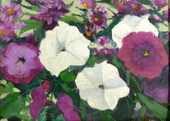 After marrying in 1925, Peterson devoted most of her time to painting floral subjects. The artist painted in her beautiful gardens at her estate in Ipswich, New York. In 1946, she wrote a how-to book on painting flowers---“Flower Painting”.