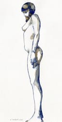 dessin encre papier nue femme bleu chair