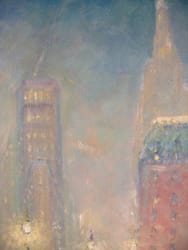 Depicting the Flatiron Building and the intersection of Broadway, Fifth Ave and 23rd Street,