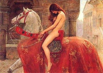 According to legend, Lady Godive lived in the early middle ages in Coventry, England. Her husband was wealthy and harsh and imposed oppresive taxes to his tenants. As lady Godiva asked for less harsh taxes, her husband told her that he would only do that after she would ride naked through the streets. The lady astonished everyone by actually performing her assignment, but her naked... (http://19thcenturyrealism.com/nude/) The story that Lady Godiva was protesting against taxes is untrue. Apparently, at the time, Coventry was a village, and there were no taxes. The procession in which Lady Godiva rode is actually a May-Eve fertility procession, many of which are found across Europe. What happened at Coventry, was that there was a Benedictine monastery there. The Christian monks did not approve of people watching the fertility procession, and so put some 'spin' on the procession, and invented this story about taxes." (http://threadsofspiderwoman.blogspot.nl/2013_04_01_archive.html)