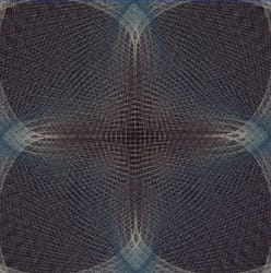 String Mandalas are constructed using a very strong polyester thread. The thread is woven by stretching it in straight lines between pins. The pins are arranged in precise geometric patterns. The beautiful curves which are created are optical illusions formed by the straight lines intersecting according to mathematical principles. The time involved to construct a design varies from a few hours to weeks depending on its complexity. 180 points - 20 layers of thread in four overlapping cardioids