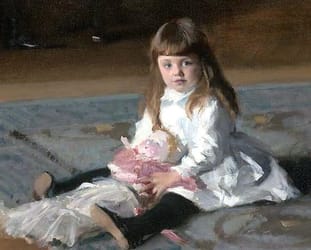 The foyer of their apartment served as the setting for Sargent’s portrait, a shadowy space in which the painter arranged the Boits’ four daughters: Mary Louisa (8 years old when painted), Florence (14), Jane (12), and Julia (4).