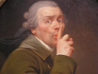 In Joseph Ducreux’s 18th century oil painting, “Le Discret,” the subject cautions the viewer to be discreet. Or has the subject – Ducreux himself – transgressed and wants you to keep his secret? “Le Discret” is part of a series that Ducreux created to convey different human emotions, all of them self portraits. He was interested in human physiognomy and how emotions could be portrayed on the face and through gesture. (http://themuseumfreak.wordpress.com/2014/07/11/le-discret-by-joseph-ducreux/)