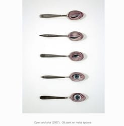"I wanted to make paintings that looked back at the viewer, and I relished the challenge of depicting the convex eye on the concave surface of the spoon. These paintings also reference the idea of the optogram, the image that forms on the retina of the eye. In the late Victorian era, it was believed by some that the eye could retain this image after death, a false belief that led to the idea that a retinal image, if developed like a photographic film, could provide evidence in murder trials."