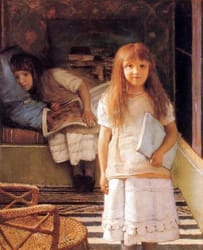 ... on 24 Sept. he married Marie-Pauline Gressin Dumoulin, the daughter of Eugène Gressin Dumoulin, a French journalist living near Brussels. Nothing is known of their meeting and little of Pauline herself, as Alma-Tadema never spoke about her after her death in 1869. Her image appears in a number of oils, though he painted her portrait only 3 times, the most notable appearing in My Studio. The couple had 3 children. Their eldest and only son lived only a few months, dying of smallpox. Their 2 daughters, Laurence (1864–1940) and Anna (1867–1943), both had artistic leanings: the former in literature, the latter in art. Neither would marry.