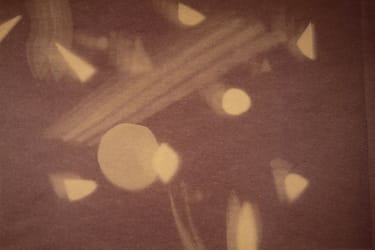 Sun Cycle is a looped HD animation presented on a monitor. It is composed of 12 frames, as such, the edition size is 12: each DVD/USB is accompanied by one of the 12 frames (construction paper) from the animation. Imagery is created by moving bits of paper on top of sheets of construction paper while sitting in direct sunlight. The sun's rays fade the exposed sections of the paper, shadows and depth are created by the artist's subtle movements of the bits of paper over the course of a day