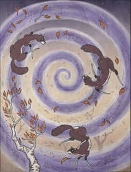 鎌鼬 The mountainous regions of Yamanashi, Nagano, and Niigata are known for a particularly dangerous kind of itachi. In these areas, grandparents warn their grandchildren to beware of kama itachi, or “sickle weasels.” These itachi have learned to ride the swirling whirlwinds of this cold region. They have claws that are as strong as steel and as sharp as razors. Their fur is spiny like a hedgehog, and they bark like a dog. They move so quickly that they are invisible to the naked eye, and they come and go with the wind. Kama itachi travel and attack in threes, striking out at people from thin air. The first kama itachi slices at its victim’s legs, knocking him to the ground. The second one uses its fore and hind legs to slice up the prone victim with thousands of dreadful cuts. The third one then applies a magical salve which heals up the majority of the wounds instantly, so that none of them proves fatal. It is said that the Kama itachi strikes with such precision that it can carve out entire chunks of flesh from its victims without causing even a drop of blood to be spilled. The attack and the healing happen so fast that the victim cannot perceive them; from his perspective he merely trips and gets up with a bit of pain and a few scratches here and there. One theory about the kama itachi’s origin is that it is only a joke: a play on words based on a sword fighting stance known as kamae tachi. However, legends of invisible beasts that ride the wind and attack humans in a similar manner are found in all regions of Japan, and the sickle weasel remains a popular explanation for these incidents throughout the country.
