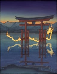 龍燈 Ryūtō are kaika which appear just above the surface of the water on calm, peaceful nights. They create no heat, nor do they burn anything. They are only found in bodies of water which are home to dragons. Ryūtō start out as single orbs of flame which hover a few meters above the surface of the water. They soon begin to multiply, until there are countless orbs. These fireballs float about aimlessly along the water, stretching and shrinking and morphing their shapes. Some of them sink back into the water. Others float up into the sky or nestle into the treetops. At dawn, they merge back together into one orb before vanishing back into the sea. Read more: http://yokai.com/ryuutou/
