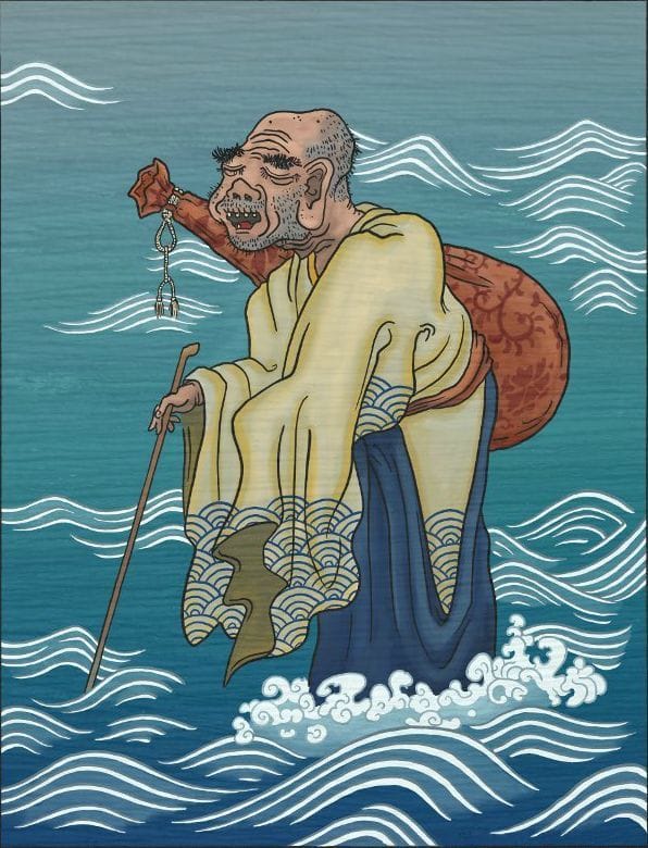 Umi zatō are mysterious, gigantic yokai which look like blind guilds-men, or zatō, who wander the seas at night, tapping the waves with their long canes.