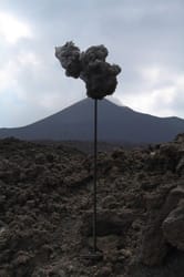 The Prognostic project is a series of objects whose meaning depends on the space where they are found. Such space was provided by the Italian volcanic cones, which served as a background on the photographs of simple, abstract sculptures. Appropriately cropped, the objects demonstrate the moment of the volcanic eruption predicting an event that will take place in the near or more distant future. These artworks served as an excuse for setting out on a trip, rather than suggesting the destination. They were the most important equipment, and were impacted by the hardships of the journey, just as the owner who carried them was. The project looks at the impact of the forces of nature on human activity, and vice-versa: human interference in nature. It examines the subject of a natural disaster as a spectacular phenomenon, in the face of which, for all the support that technology gives us, we are powerless. It depicts the disaster from another point of view, quite ironically, as a sort of an “on demand” phenomenon. It points at the fact that natural disasters are used by and desired in the popular culture, where new apocalyptic visions satisfy the human need for fear and dread connected with the nature.
