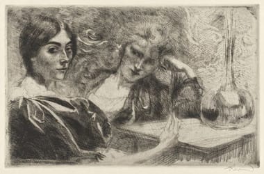 Besnard's deeply incised etching lines cast his feline women in dark shadows and gave them a tragic accent. Melancholy, bored, and dramatically alluring (in a Gloria Swanson way), they help to define for us the decadence of the century.