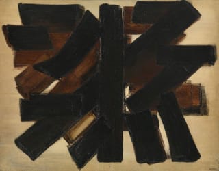 from Artsy: "At 95 years old, Pierre Soulages is France’s most famous, most popular and most successful living painter. Born in 1919, the abstract painter was known throughout the 1950s and 1960s as a French parallel to the American Abstract Expressionism of artists like Mark Rothko and Willem de Kooning, with whom he worked intimately during his time in New York. His childhood fascination with prehistoric art is evident in his dark paintings, dubbed “outrenoir”, or beyond black. Known today as the “painter of black”, Soulages has obsessively worked with this non-colour since the beginning of his career, gaining him international recognition as one of the first painters to develop new style of post-war abstraction. Even in his later works the prolific artist continues to investigate the depth and light so deeply connected to his signature paintings."