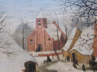 In The Census at Bethlehem, the biblical scene is so completely integrated into Bruegel’s depiction of a Flemish village on a late winter afternoon that you might miss the holy couple on their way to be counted. On the left is the tavern which is serving as the census-taking station. However, what Bruegel has chosen to portray is not enumeration, but rather taxes being paid...