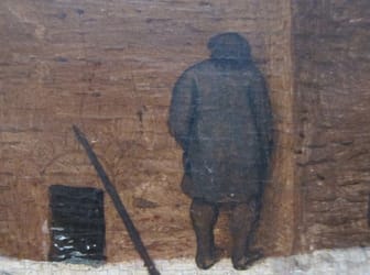 In The Census at Bethlehem, the biblical scene is so completely integrated into Bruegel’s depiction of a Flemish village on a late winter afternoon that you might miss the holy couple on their way to be counted. On the left is the tavern which is serving as the census-taking station. However, what Bruegel has chosen to portray is not enumeration, but rather taxes being paid...
