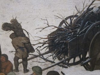 In The Census at Bethlehem, the biblical scene is so completely integrated into Bruegel’s depiction of a Flemish village on a late winter afternoon that you might miss the holy couple on their way to be counted. On the left is the tavern which is serving as the census-taking station. However, what Bruegel has chosen to portray is not enumeration, but rather taxes being paid...