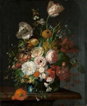 Her compositions were quite different from the compact, symmetrical arrangements of Clara Peeters and other flower painters of the early 17th century. Ruysch's flower paintings are not only scientifically accurate descriptions of flowers; they are expressions of form, color, and texture.