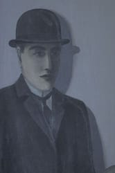 Magritte had a hankering for crime, and he even had a favorite (fictional) murderer. Almost a century before Michael C. Hall became Dexter, Fantômas was the original pop culture serial killer who was a star in both print and on the big screen. Magritte adapted a scene from the 1913 Fantômas flick...