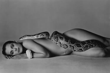 Richard Avedon’s Nastassja Kinkski and the Serpent exudes a timeless eroticism. This iconic image was taken during a two hour shoot when Kinski was at the height of her career and Avedon was already a world renowned fashion photographer. Intertwined with a boa constrictor, grappling with temptation, seduction and power, Kinski is clearly referencing deeply rooted concepts in classical art and mythology, most notoriously the story of Adam and Eve and the serpent that tricked Eve to take an apple from the Tree of Knowledge. Commissioned for Vogue, the only fashion emblem present is the Patricia von Musulin bracelet which the editor of Vogue at the time noted she regretted including within the photograph.