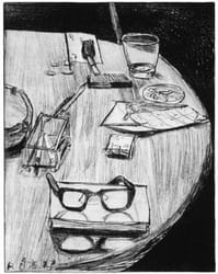 Artwork Title: #26 (Table Still Life with Ashtray and Numbers) from 41 Etchings DrypointsArtwork Title: #26 (Table Still Life with Ashtray and Numbers) from 41 Etchings Drypoints