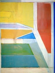 ...Compare the way the Californian’s bold white pathways in “Ingleside” (1963) reverse such time travel by zipping through the neighborhood on their way toward the atmospheric geometry of “Ocean Park # 27″ (1970). Very different paintings, they nonetheless speak to the all-of-a-piece nature of his oeuvre. When seen from a distance, unpredictable shifts in an artist’s direction — as from the painterly realism of “Ingleside” to the near-total abstraction of “Ocean Park # 27” — may seem not simply compatible but inevitable. As the car warning goes: Objects in mirror are closer than they appear. (http://hyperallergic.com/341431/origins-of-originality-matissediebenkorn-at-the-baltimore-museum-of-art/)