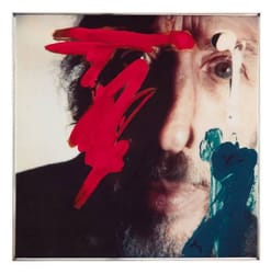 Richard Hamilton was a key figure in the British and international Pop Art movements, as well as being one of its main theoreticians. The majority of his work is concerned with the art historical traditions in contemporary art. ‘Four Self-Portraits 05.3.81’ takes portraiture as its starting point, using new media to expand its boundaries. Instead of limiting the portrait to a single image, Hamilton uses four. In the early 1980s, the artist took Polaroids of himself and added layers of acrylic color. After 10 years, he digitally converted the photos into transparencies to be made into enlarged prints. Mounted on canvas, they epitomize the layered way in which Hamilton’s works deal with artistic media.