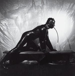 The American writer, Truman Capote (1924-1984), is best known for works such as ‘Breakfast at Tiffany’s’ (1958) and ‘In Cold Blood’ (1966). He was very publicity-conscious, ever since 1948, when he posed for a suggestive and provocative photograph to adorn the dust jacket of his book ‘Other Voices, Other Rooms’. In later years he was fairly reclusive. This photograph shows him relaxed, presumably at home, but by placing him alongside a strange, white sculpture of a palm tree Mapplethorpe manages to suggest something of Capote’s notorious eccentricity.